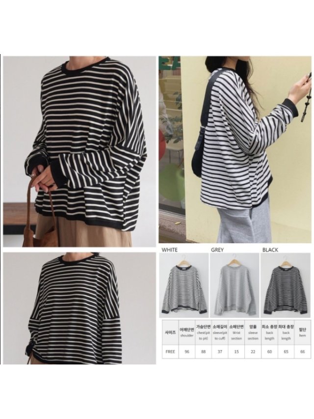 25354🧑🧑🧒🧒AA813-SJ-黑白間條鬆身長袖⚠️預計2月底到貨-⚠️
