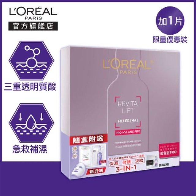 16423⏺AA381-Loreal-❗️買一送一❗️活力緊緻透明質酸 注入式保濕精華玻色因PRO面膜 (6片裝) 📅2026/7❤️現貨