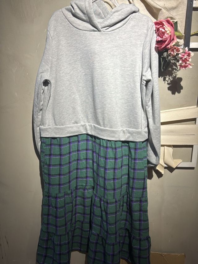 16851👚珠地花灰拼格仔連身裙❤️現貨