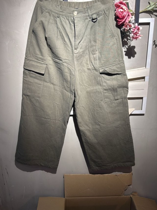 16852👚棒棒糖軍綠色扯布料工裝褲(腰圍有小橡筋)❤️現貨