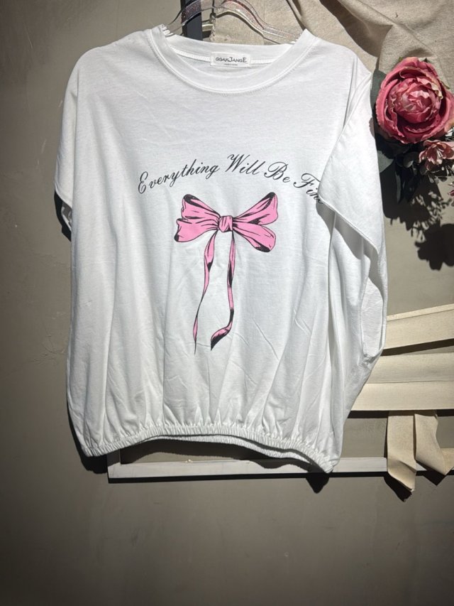 16857👚白色蝴蝶結大蝙蝠袖Tee❤️現貨