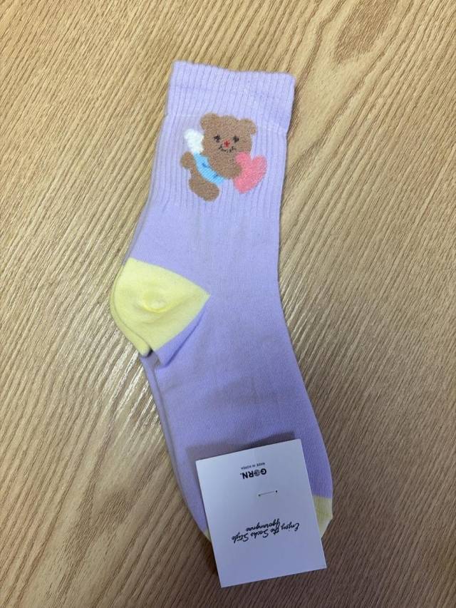 19847🥾AA535-Chic-紫色心心熊仔中筒襪❤️ 現貨❤️