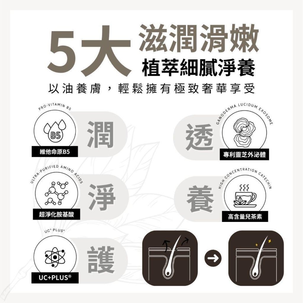 🌟 四大珍稀植萃油 × B5維生素原:蘊含金黄荷荷芭油、頂級甜杏仁油、御選乳木果油和天然角鯊烷,強化保濕力,使用後柔滑水濶,觸感綾缎般細緻!