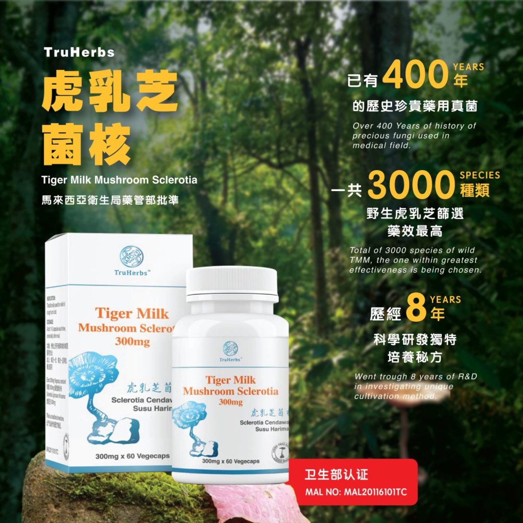 22779🇲🇾AA454 - Truherbs虎乳芝菌核300MGx60粒❤️現貨❤️