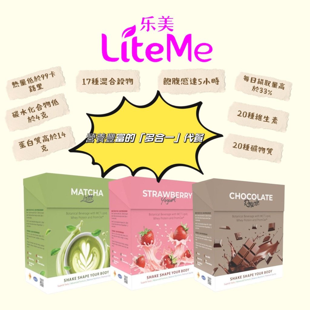 馬來西亞保健品公司XCEL🏅全新推出的Lite-Me 代餐奶昔🥤富含多種維生素,礦物質和健康營養素💪🏻健康美味又方便😋每餐熱量低於99卡路里😱減肥瘦身幫到你