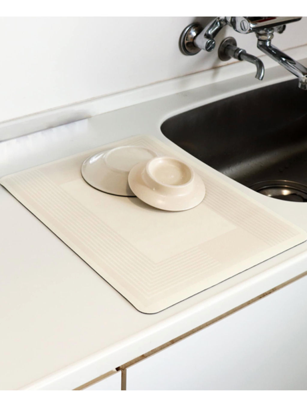●展開吸水墊,將洗完的餐具等放在墊子上,吸收水分。