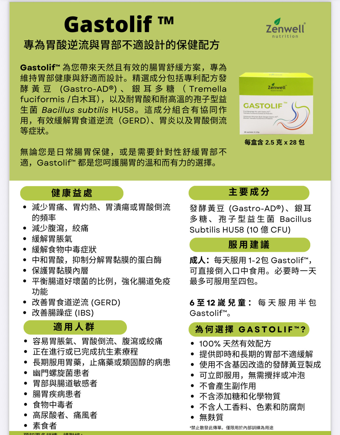 23844💊AA758-Zenwell Gastolif 益胃寶 2.5gX28條⚠️預計11月底到貨⚠️📮買滿$499SF包郵📮