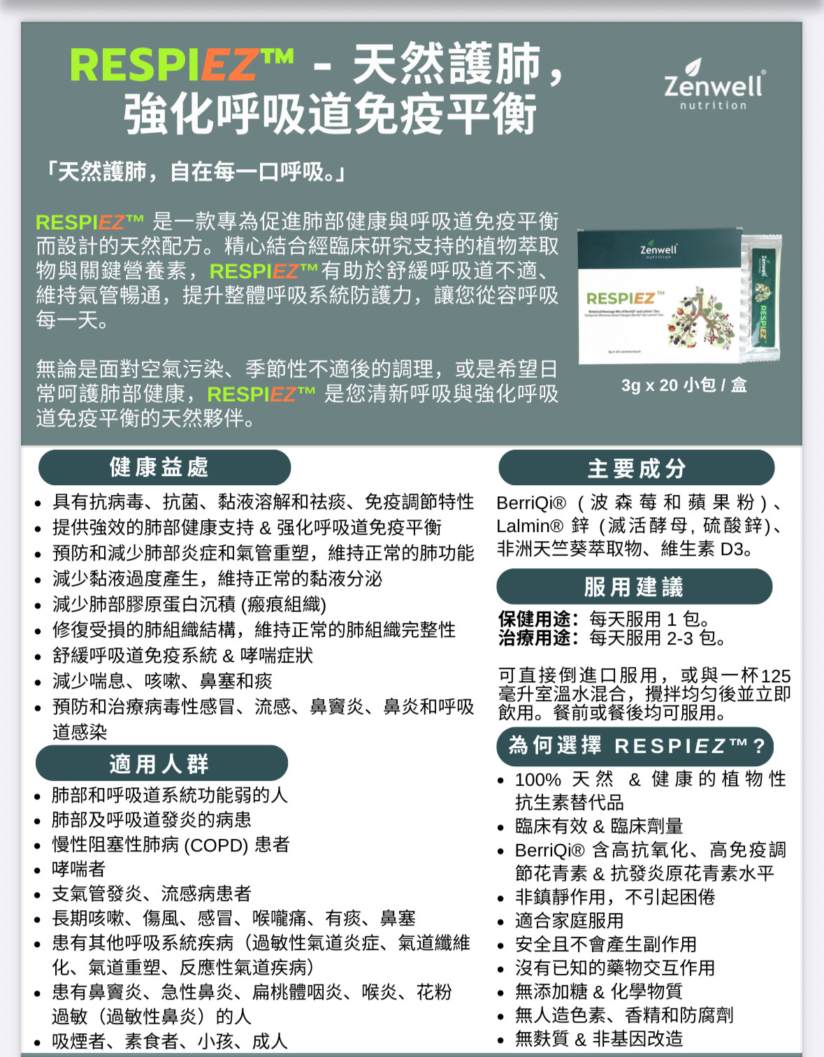 23860💊AA758-Zenwell RespiEZ 呼暢通 3gX20條⚠️預計11月底到貨⚠️📮買滿$499SF包郵📮
