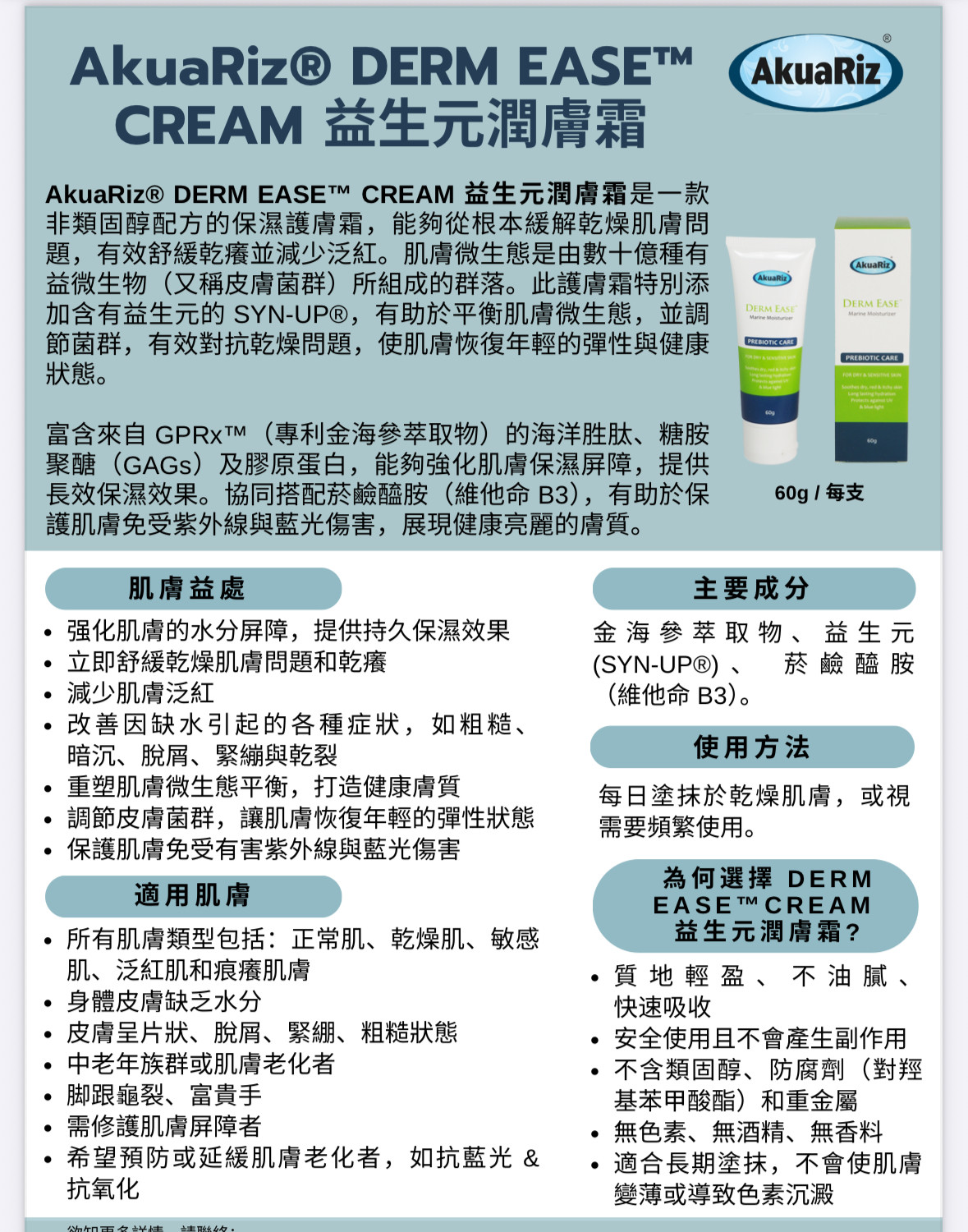 23874💊AA758-Akuariz Derm Ease Cream 益生元潤膚霜 60g⚠️預計11月底到貨⚠️📮買滿$499SF包郵📮
