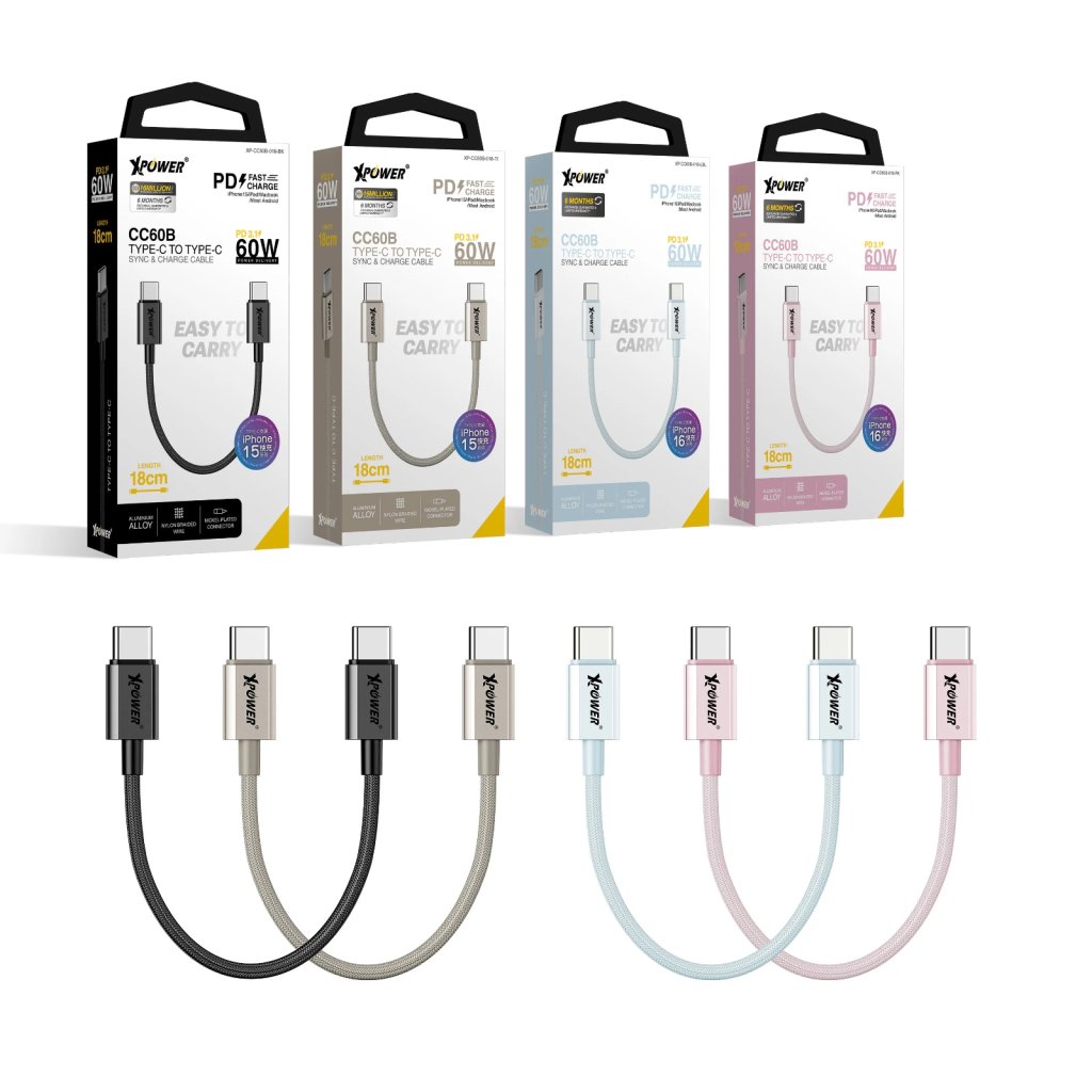24384 -雙11⏸️AA778-XPower CC60B 18cm Aluminium Alloy 60W Type-C>Type-C Sync & Charge Cable⚠️預計12月中至底到貨⚠️