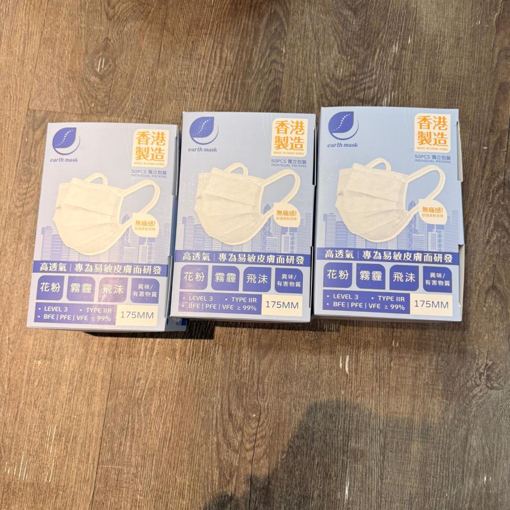 24401-雙11⏸️AA781-Earth Mask三摺平面口罩 (白色) (50片獨立包裝) 香港製造⚠️預計12月中至底到貨⚠️