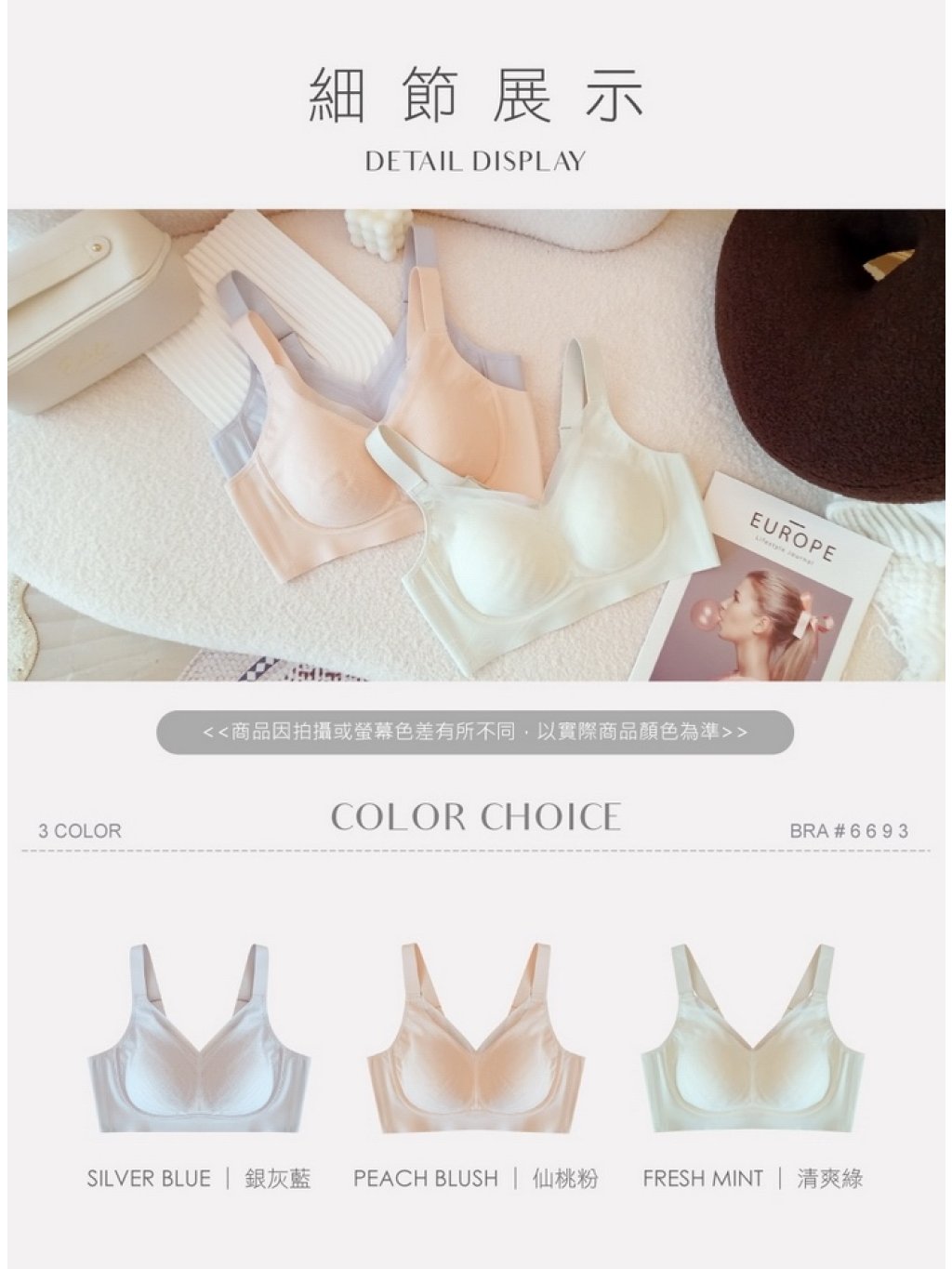 襯墊為固定均薄襯墊,完美掌托乳房,集中雙溝