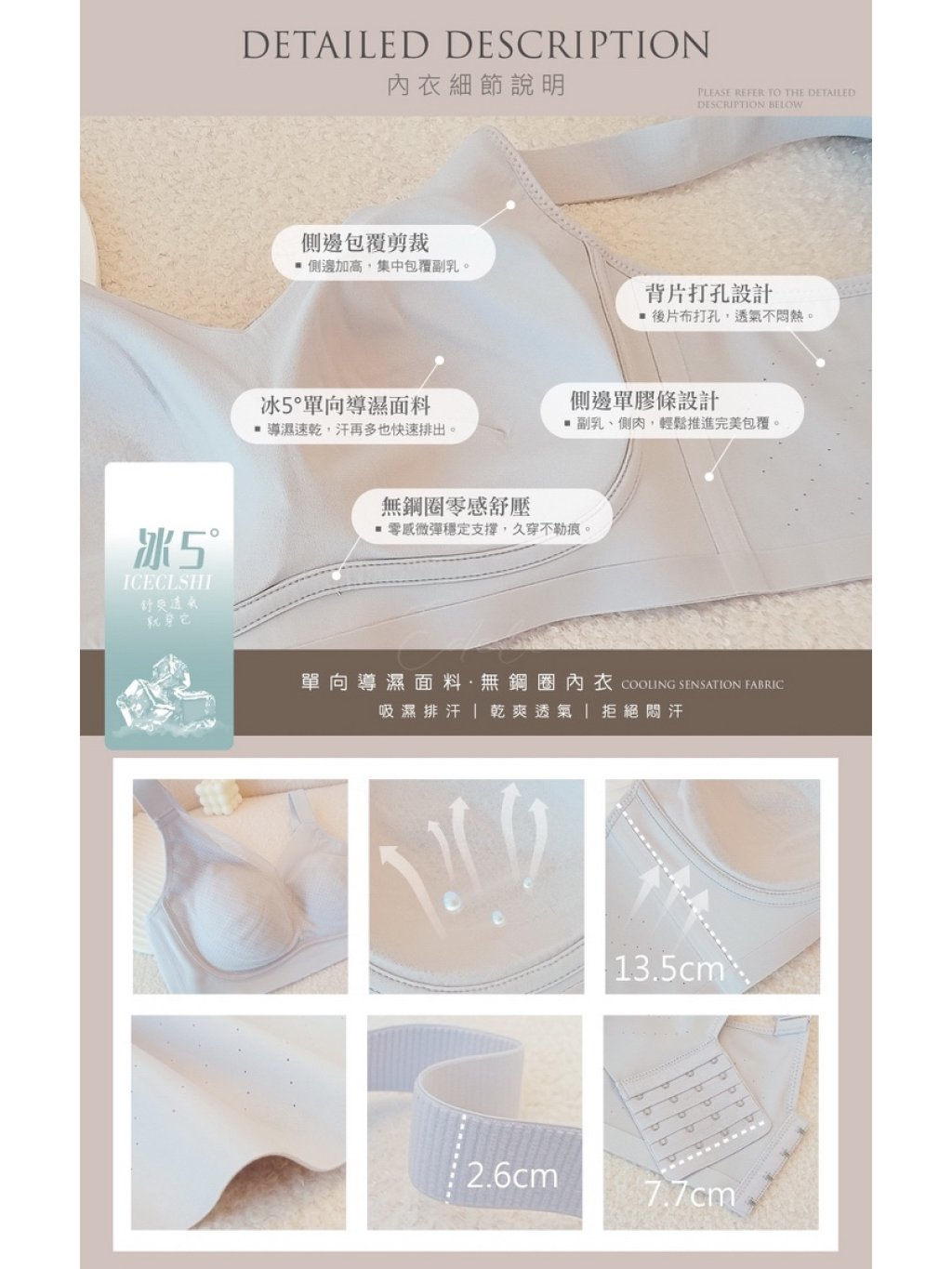 內衣採用嬰兒棉, 單向導濕布,流汗後瞬間超乾爽