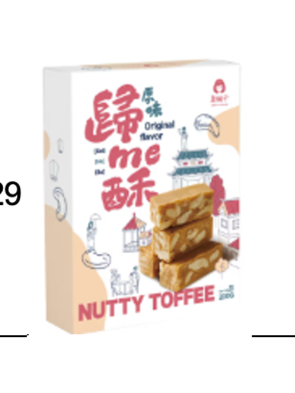 嚴選紐西蘭奶油,加入手工熬煮的深琥珀色焦糖,攪拌至琥珀色光澤,灑上慢火烘焙的香酥腰果,香脆不黏牙的太妃糖誕生,香甜中帶著焦香,口口都是極致享受。