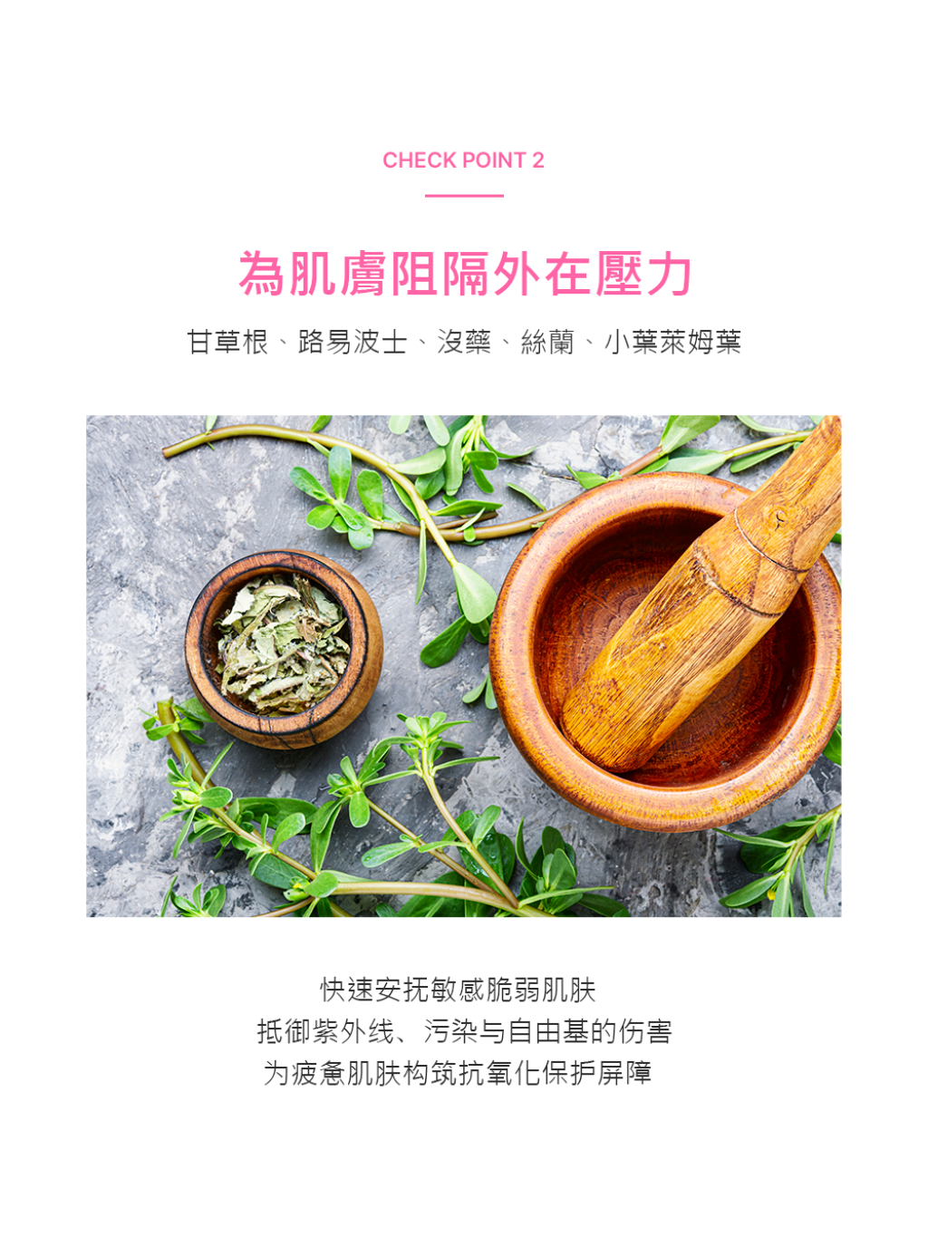 快速安抚敏感脆弱肌肤 抵御紫外线、污染与自由基的伤害