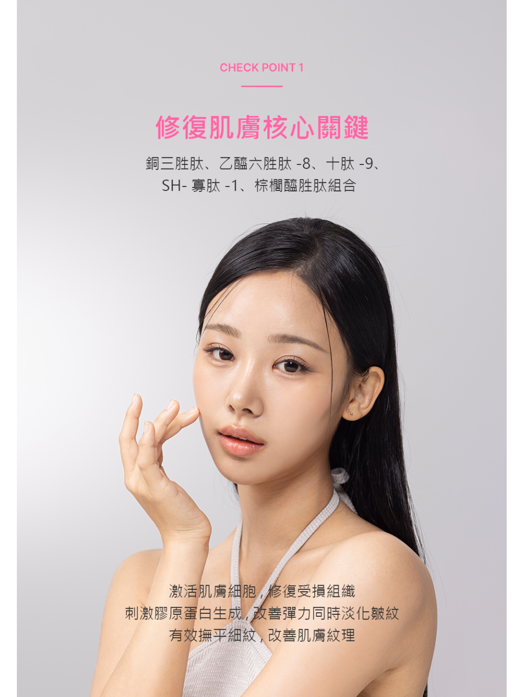 銅三胜肽、乙醯六胜肽-8、十肽-9、SH-寡肽-1、棕櫚醯胜肽組合