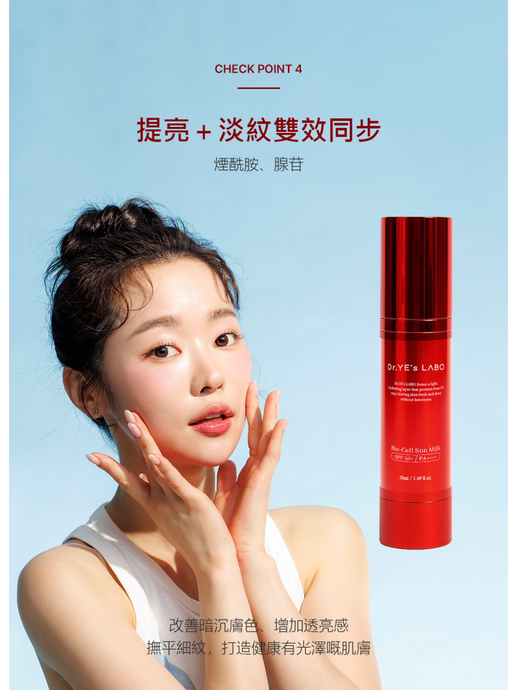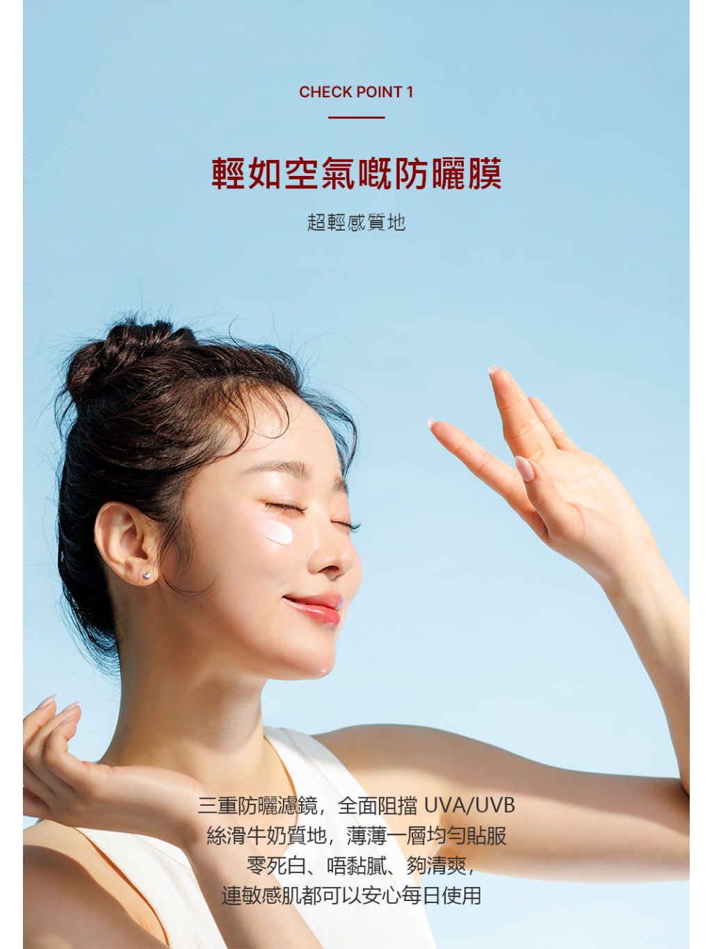 超越單純防曬功能,兼顧護膚效果 輕盈清爽質感,再加抗老化胜肽功能