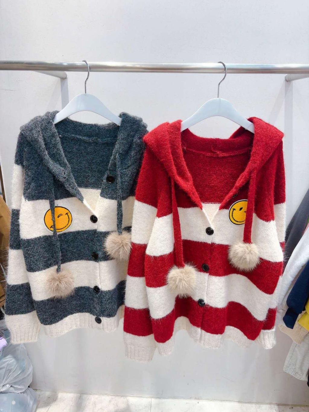25685🧑🧑🧒🧒AA825-間條有鈕毛毛褸⚠️ 預計2月底到貨⚠️