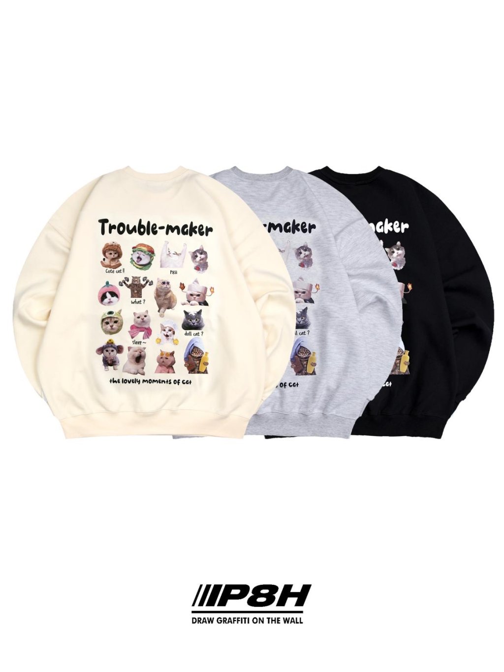 25703🧑🧑🧒🧒AA828-Plus-背面多貓貓無帽衛衣❗️珠地料-冇毛❗⚠️ 預計2月底到貨⚠️