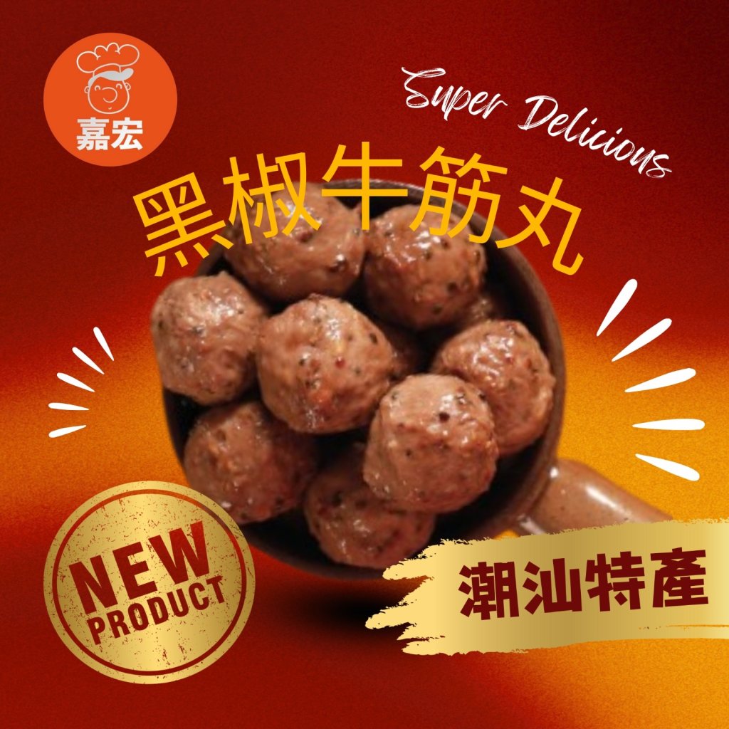 26229❄️AA845❗️黑椒牛筋❗️嘉宏潮汕丸 180g (11粒)📆2026/7⚠️自選派貨日期2月11-15日-23-27日⚠️🚚買胡椒豬肚丸2件包郵🚚