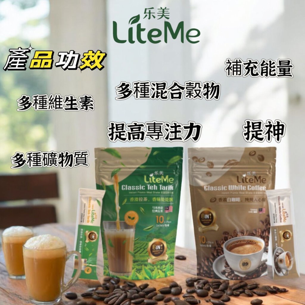 🇾馬來西亞保健品公司XCEL🏅全新推出的Lite-Me 六合一馬來西亞香滑拉茶 / 馬來西亞經典白咖啡飲品🧋☕由MCT脂質,多種維生素,多種礦物質,多種穀物,拉茶/咖啡,全脂奶粉🥛低聚果糖和甜葉菊🍯配製而成👍🏻