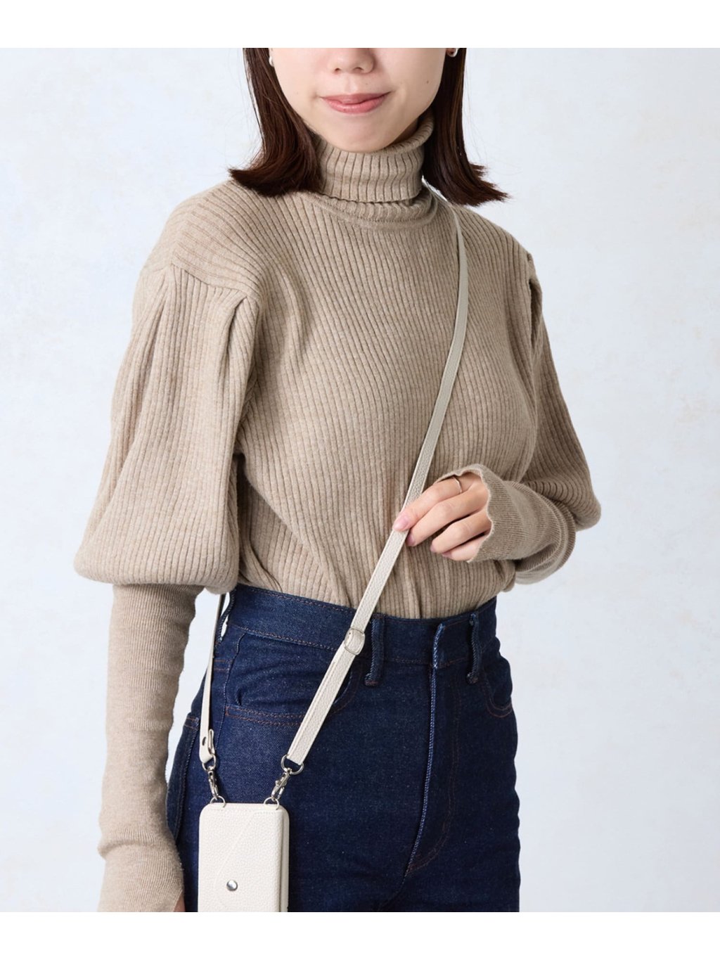 ●給人時尚、乾淨、休閒的印象的皮革風格的智慧手機單肩包。
