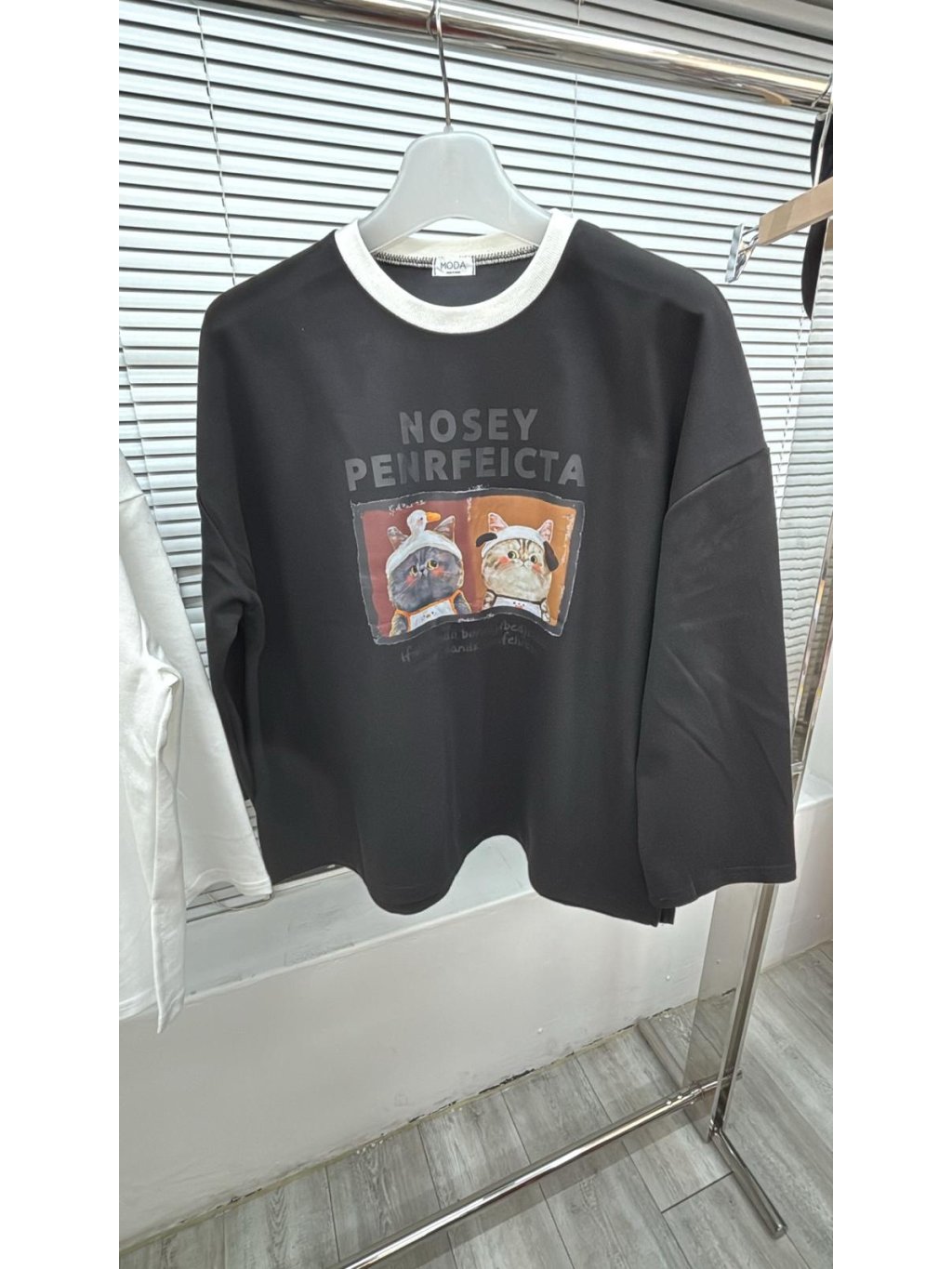 主頁 26990🌊AA881-moda -兩隻貓貓長袖薄身Tee⚠️預計5月初到貨⚠️