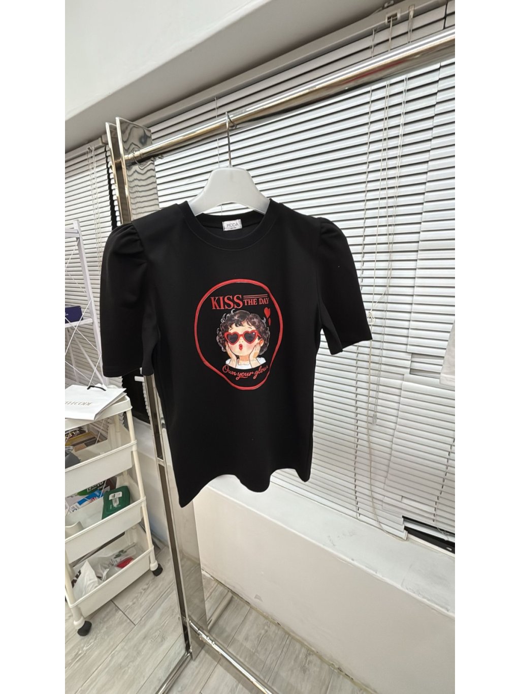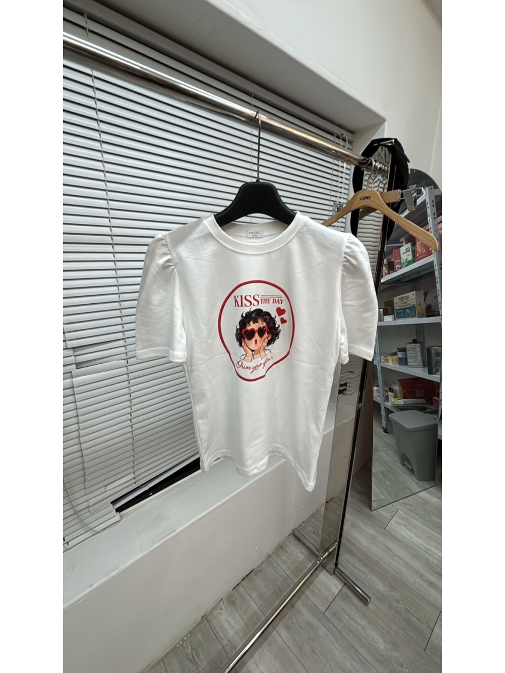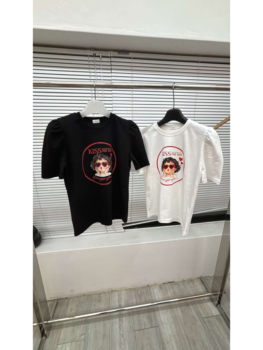 26996🌊AA881-moda -kiss眼鏡女孩泡泡手袖tee⚠️預計5月初到貨⚠️