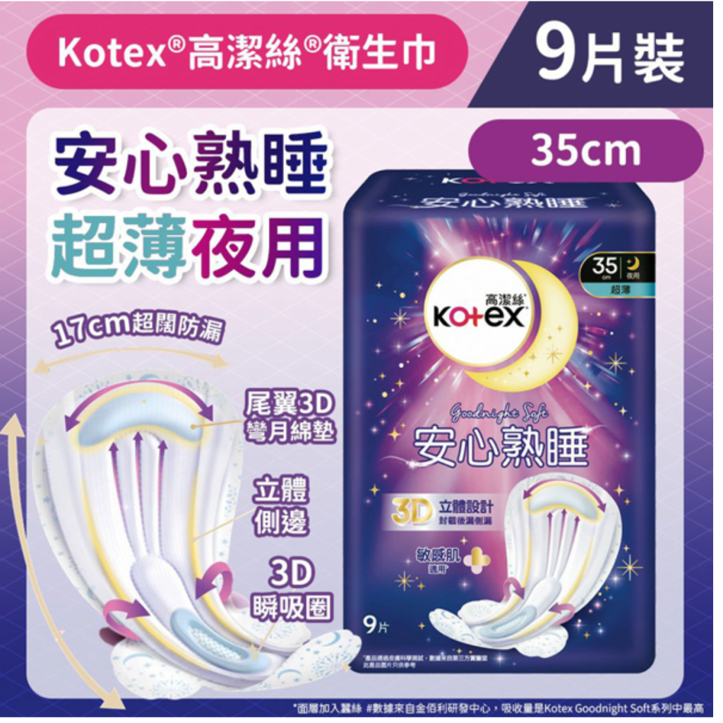 主頁 27194🧻AA890-Kotex 安心熟睡衛生巾(超薄夜用裝)⚠️預計5月初到貨⚠️📮滿$599包郵📮
